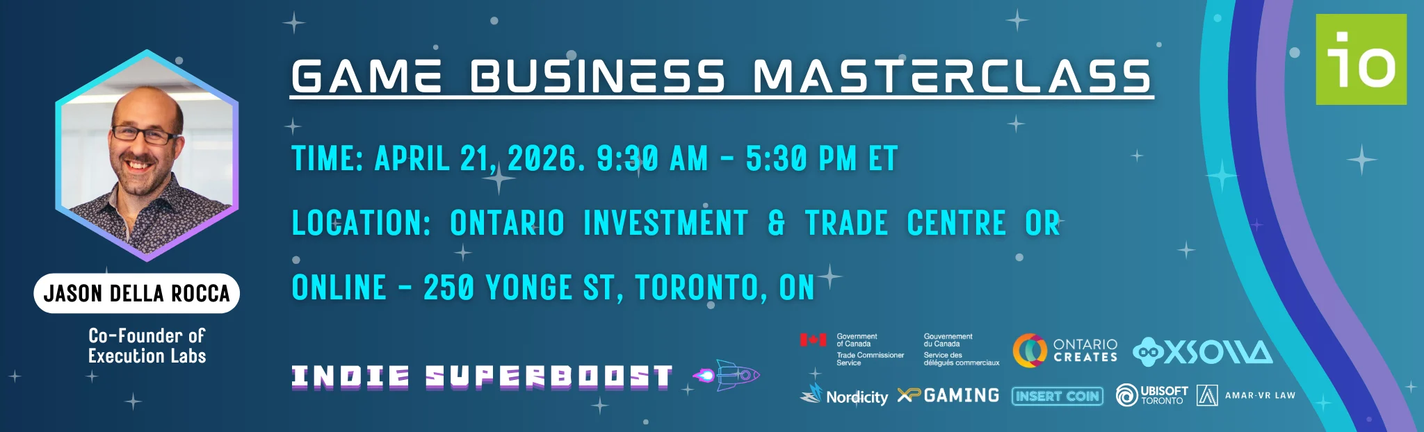 Elevate your studio’s success at Interactive Ontario’s Indie Superboost Game Business Masterclass, led by industry veteran Jason Della Rocca in May/June 2026 in Toronto (or online). This day-long event dives deep into five critical modules—Funding Models, Competitive Analysis, Traction, Community Validated Deployment, and Pitching to Publishers—ensuring you leave with actionable insights to help your studio stand out.