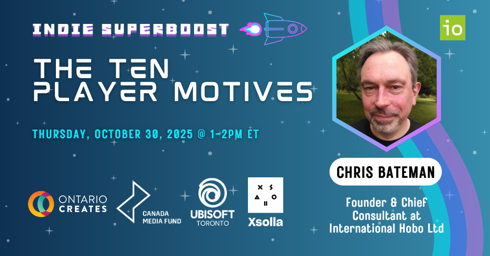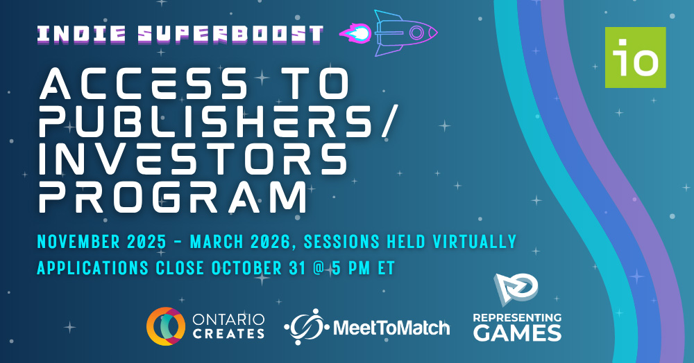 - Indie demo corner featuring Ontario indie games during IO Connect mixer events.
